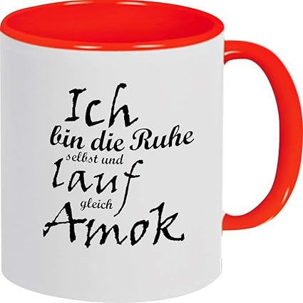 Shirtstown Kaffeepott Ich Bin Die Ruhe Selbst Und Lauf Gleich Amok Tasse Pott Kaffeetasse Teetasse Spruch Spruche Logo Farbe Rot Amazon De Kuche Haushalt