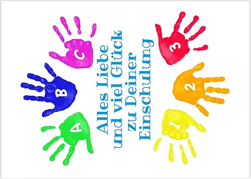 Grosse Xl Gluckwunsch Karte Zur Einschulung Mit Umschlag Din A5 Bunte Hande Abdrucke 1 Schultag Eingeschult Einschulungskarte Amazon De Burobedarf Schreibwaren