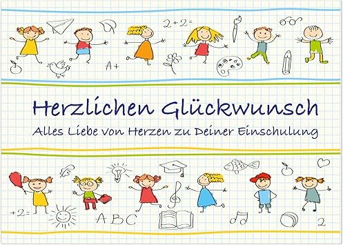 Grosse Xl Gluckwunsch Karte Zur Einschulung Mit Umschlag Din A5 Karo Papier Mit Vielen Kindern 1 Schultag Eingeschult Einschulungskarte Amazon De Burobedarf Schreibwaren