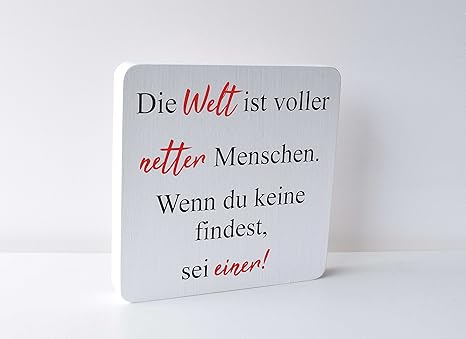 Martoli Holzbild Mit Spruch Die Welt Ist Voller Netter Menschen Wenn Du Keine Findest Sei Einer Weiss 15 X 15 Cm Amazon De Kuche Haushalt