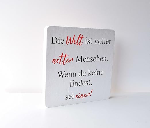 Martoli Holzbild Mit Spruch Die Welt Ist Voller Netter Menschen Wenn Du Keine Findest Sei Einer Weiss 20 X 20 Cm Amazon De Kuche Haushalt
