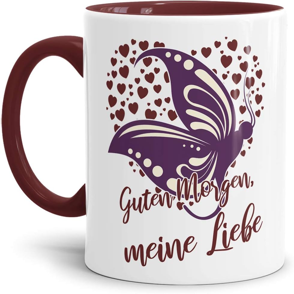 Amazon De Liebes Tasse Mit Spruch Guten Morgen Meine Liebe Schmetterling Paar Schatz Verliebt Geschenk Idee Innen Henkel Weinrot