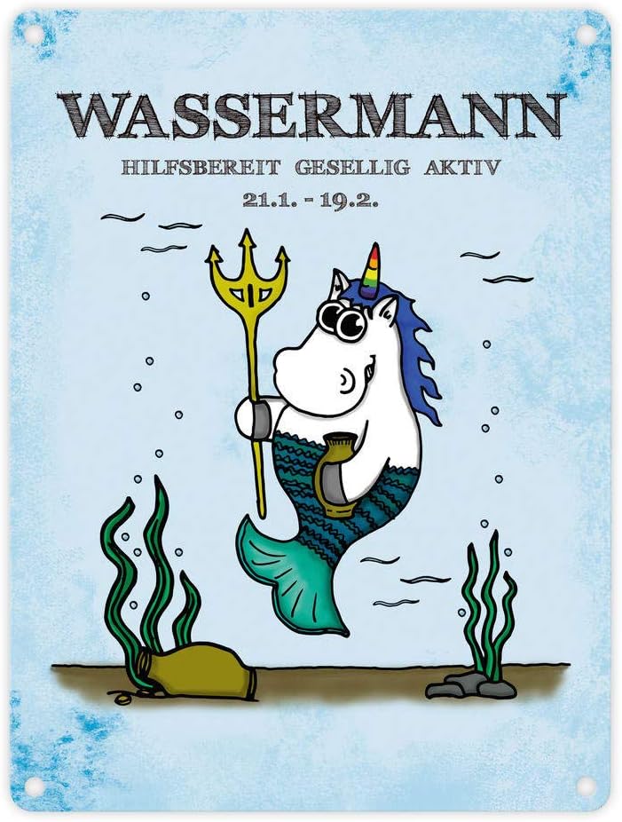 Honeycorns Metallschild Mit Sternzeichen Wassermann Motiv Aluminiumschild Blechschild Werbeschild Turschild Warnschild Einhorngeschenk Lustig Witzig Spruch Astrologie Tierkreiszeichen Sternbilder Amazon De Garten