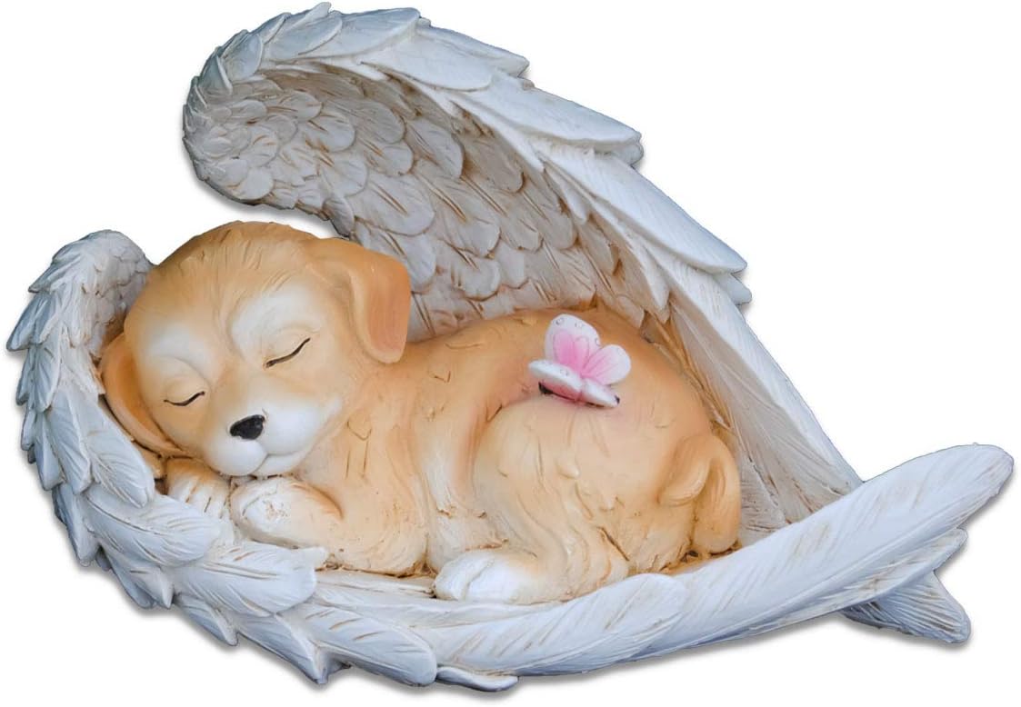 Mw Handel Tier Grabschmuck Hund Liegend In Engelsflugel Grabdeko Grabstein Gedenkstein Amazon De Garten