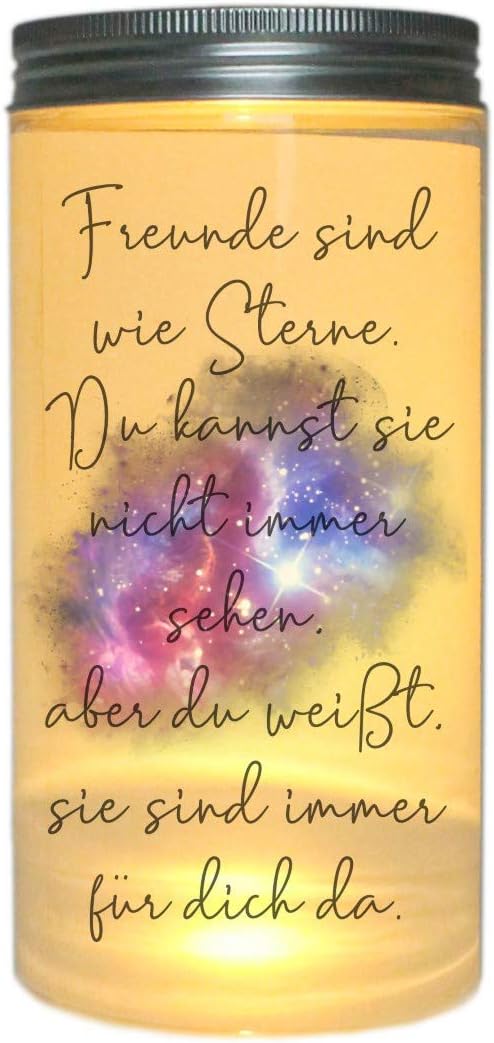 Wb Wohn Trends Led Licht Freunde Sind Wie Sterne 14x7cm Dose Mit Deckel Leuchte Led Lampe Mit Text Spruch Amazon De Kuche Haushalt