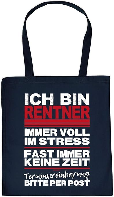 Rentner Tasche Geschenk Tasche Stofftasche Motiv Rente Ruhestand Ich Bin Rentner Immer Voll Im Stress Spruche Baumwolltasche Farbe Navyblau Amazon De Koffer Rucksacke Taschen