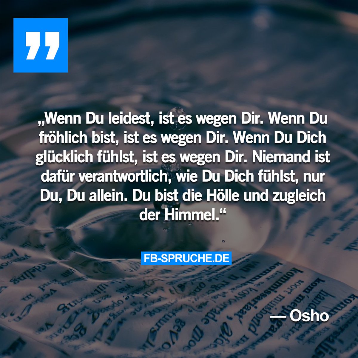 Wenn Du Leidest Ist Es Wegen Dir Wenn Du Frohlich Bist Ist Es Wegen Dir Wenn Du Dich Glucklich Fuhlst Ist Es Wegen Dir Osho Zitate Spruche Spruche Zitate