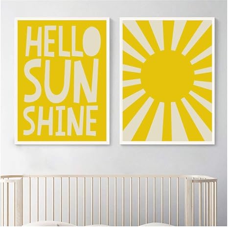 Ruichuangkeji Wandkunst Leinwand Malerei Kinderzimmer Poster Druck Gelb Hallo Sonne Sonnenschein Zitat Kinderzimmer Wandbild Spielzimmer Kunst Wanddekoration 2x50x70cm Kein Rahmen Amazon De Kuche Haushalt